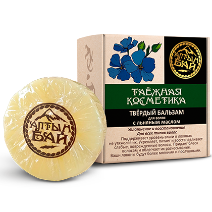 - Твёрдый бальзам для волос с льняным маслом, Алтын Бай