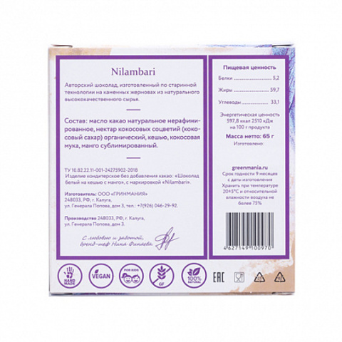 - Шоколад белый на кешью с манго Nilambari, 65 г