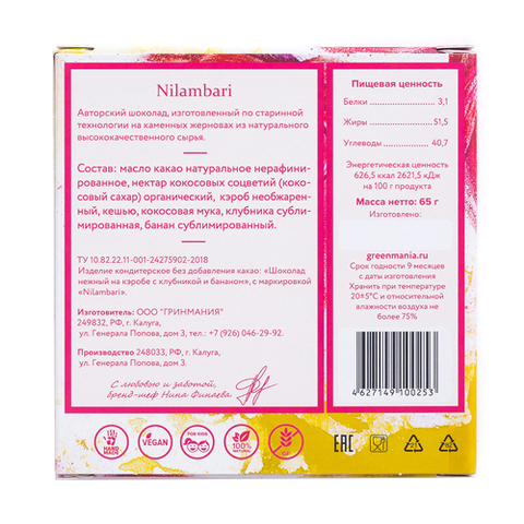 - Шоколад нежный "Кэроб с клубникой и бананом" Nilambari, 65 г