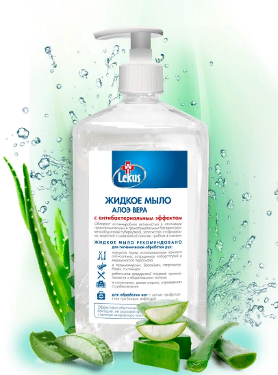 - Жидкое мыло АЛОЭ ВЕРА с антибактериальным эффектом 1 л. с дозатором