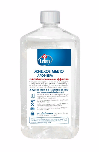 - Жидкое мыло АЛОЭ ВЕРА с антибактериальным эффектом 1 л. с крышкой (для логтевого дозатора ДУ-010)