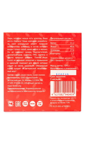 Люди, которым нельзя есть шоколад, Ваша мечта сбылась! Наша компания разработала свой уникальный рецепт шоколада, в состав которого входит только кэроб, какао-масло и молоко. Он не содержит сахара, подсластителей, ароматизаторов , кофеина, ГМО, глютена и других вредных добавок. Наш шоколад не вызывает аллергию и привыкания и идеально подходит для людей страдающих сахарным диабетом, детей, а также для беременных и кормящих мам.