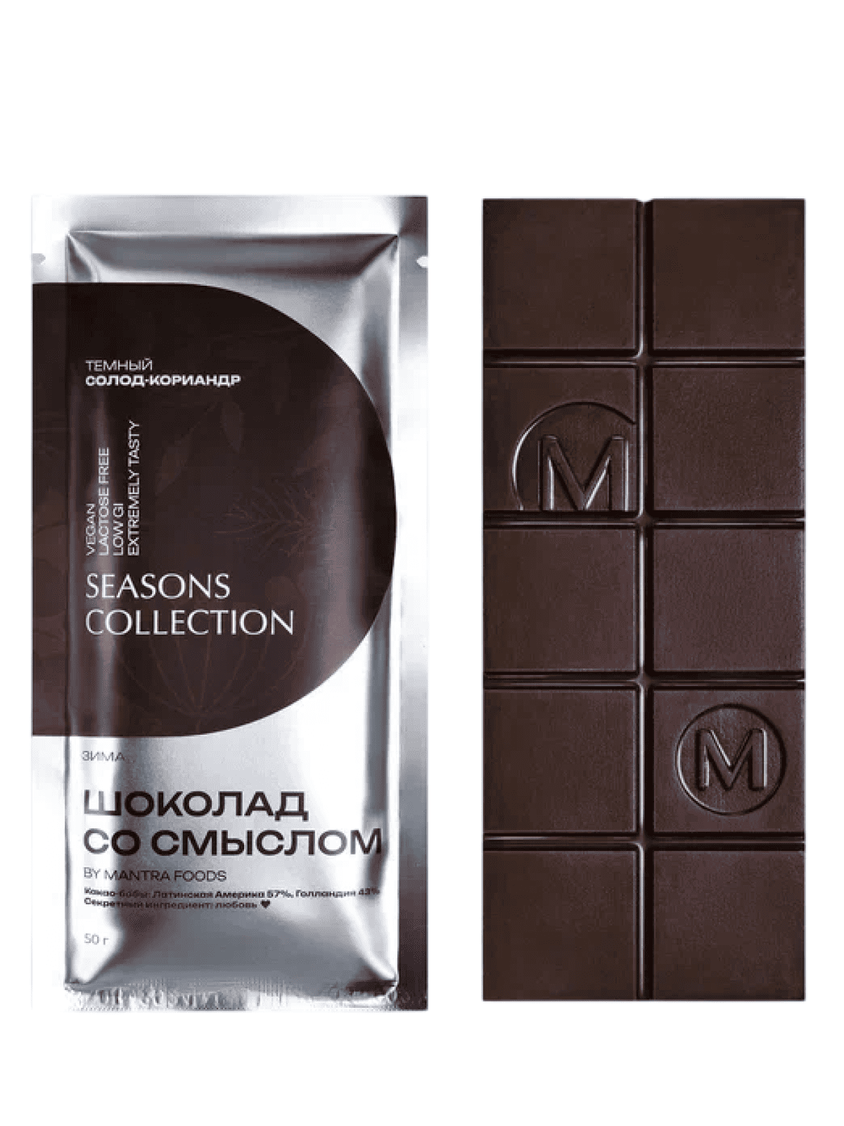 - Шоколад темный со смыслом " Солод-кориандр ", Mantra food, 50 г