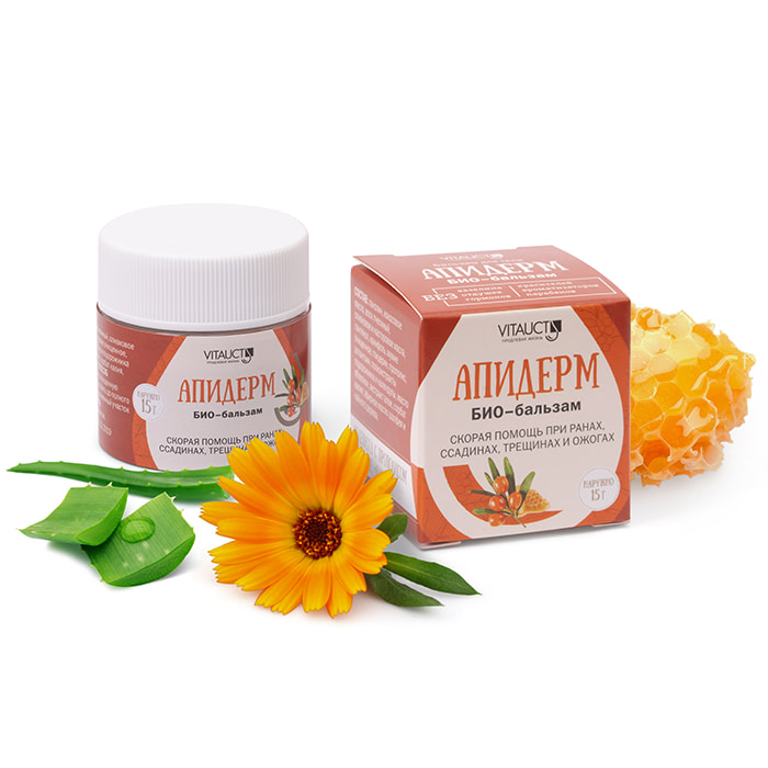 Полиэкстракты подорожника, календулы и экстракт алое, содержащиеся в БИО-бальзаме Апидерм, имеют ранозаживляющие, бактерицидные, противовоспалительные