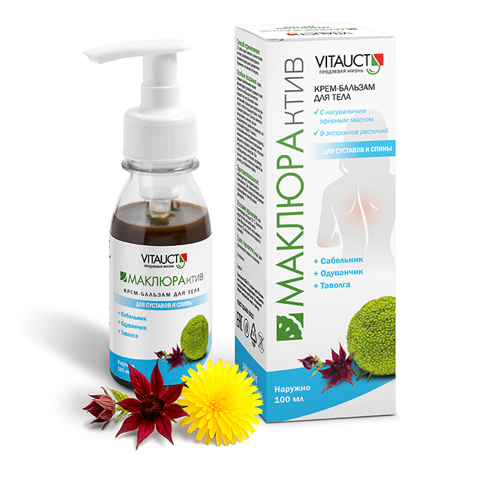 Крем-бальзам "МАКЛЮРАктив" ДЛЯ СУСТАВОВ И СПИНЫ, VITAUCT, 100 мл.