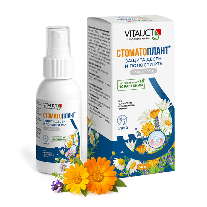 - Экстракт для местного применения "Стоматоплант", спрей Защита десен и полости рта, 50 мл., VITAUCT
