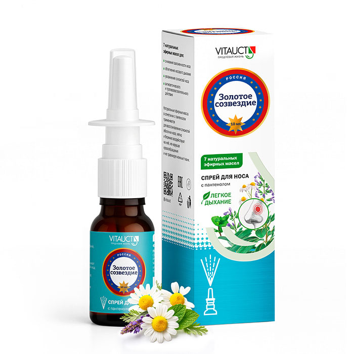 - Средство для гигиены и ухода за слизистой носа, "Золотое созвездие", спрей "Легкое дыхание" 10 мл., VITAUCT