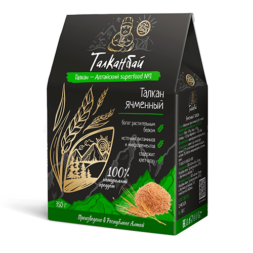 Каша: 70 граммов талкана (примерно 5 столовых ложек) залейте 250 мл кипячёной горячей воды, тщательно перемешайте, добавьте по вкусу соль, сливочное масло, мёд, сушёные фрукты, ягоды или орехи. Дайте настояться 3-5 минут.