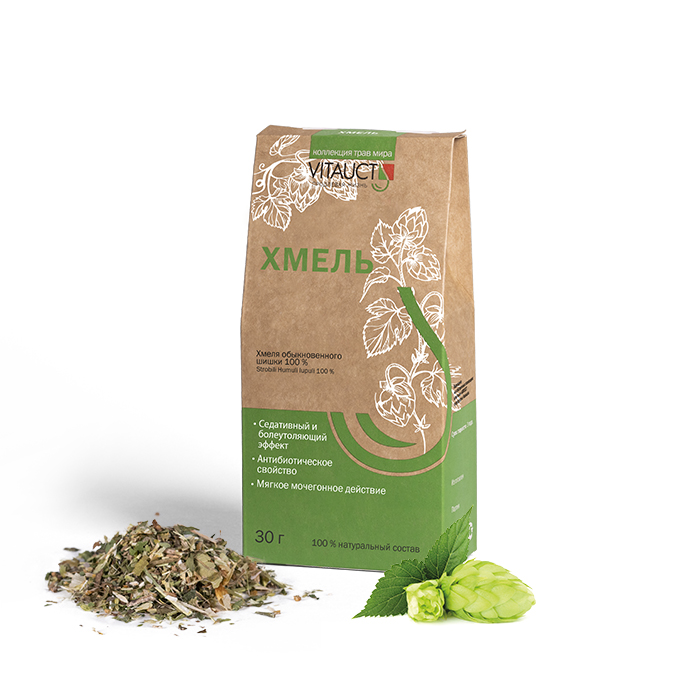 - Хмеля обыкновенного шишки. При неврозах, бессоннице, климактерических проявлениях, 30 г, VITAUCT