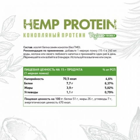 - Конопляный протеин / Hemp protein / 300 гр